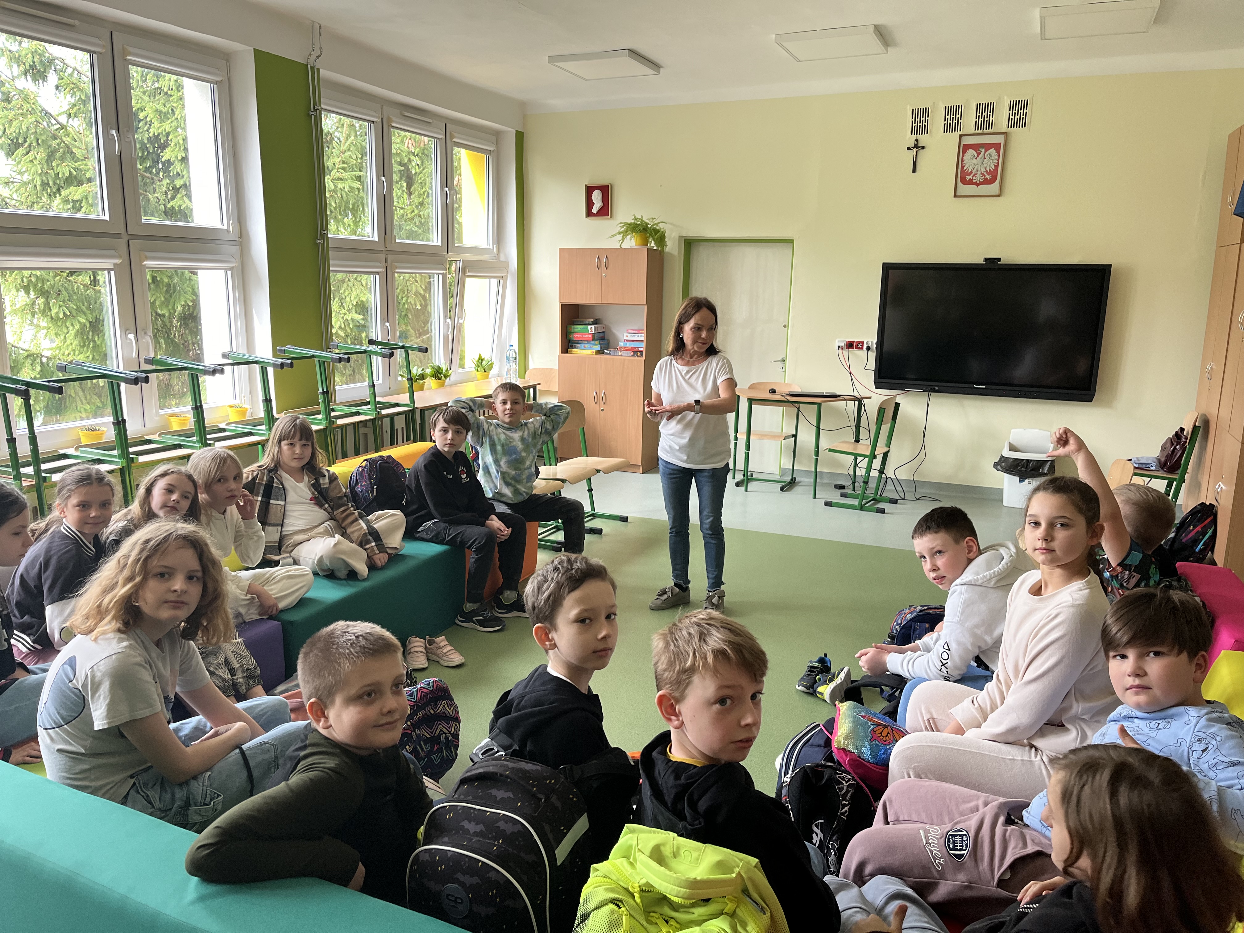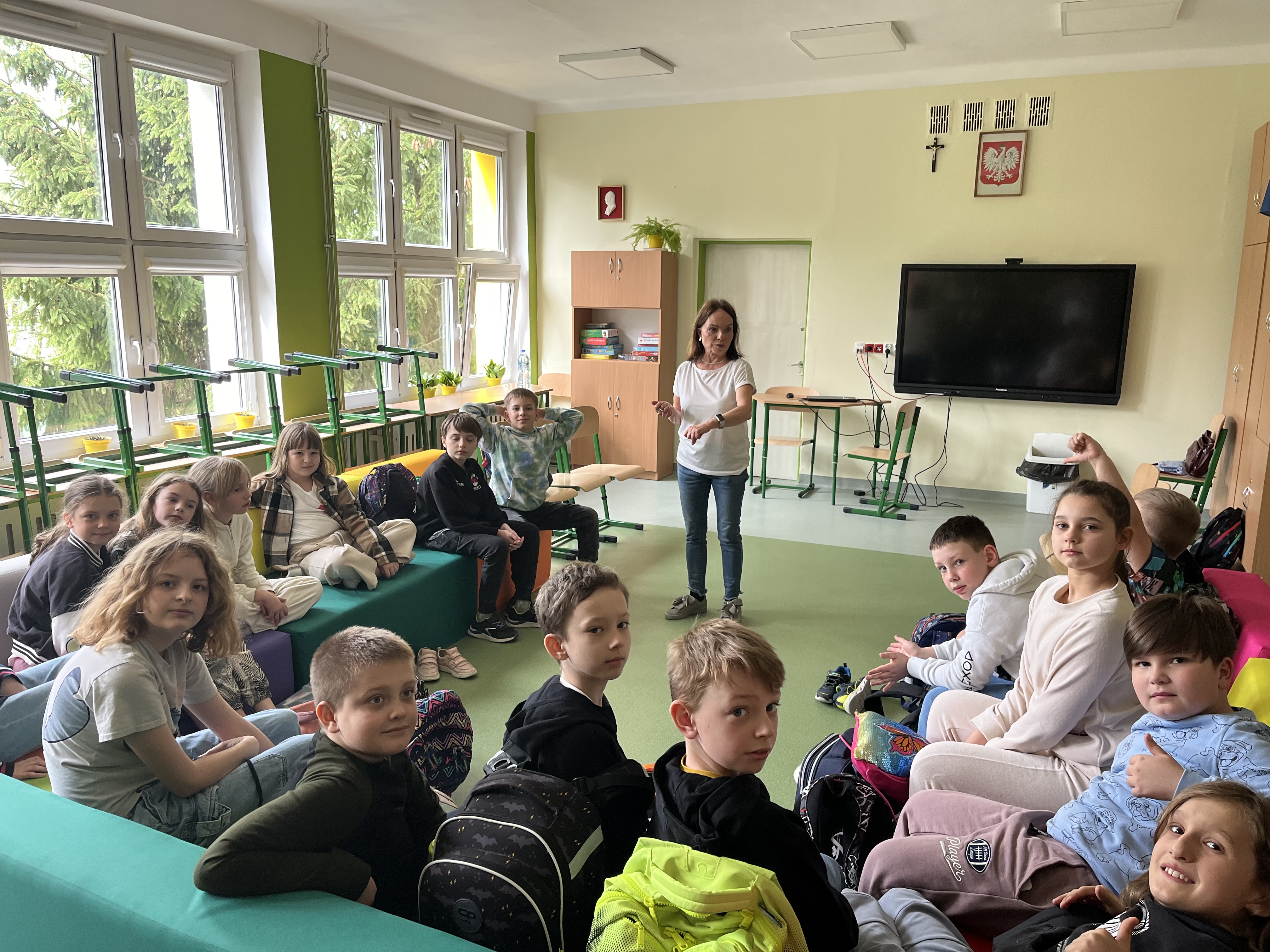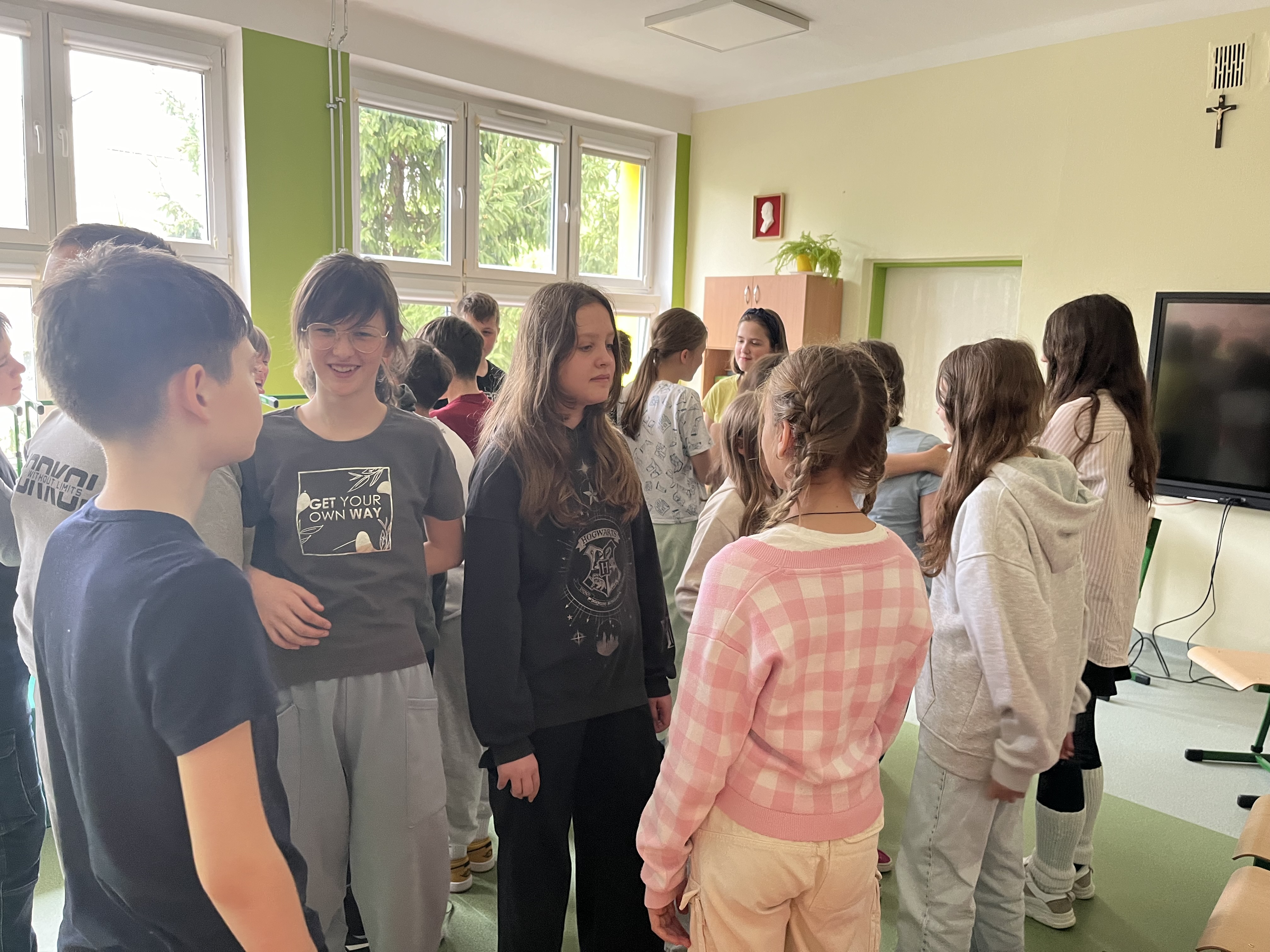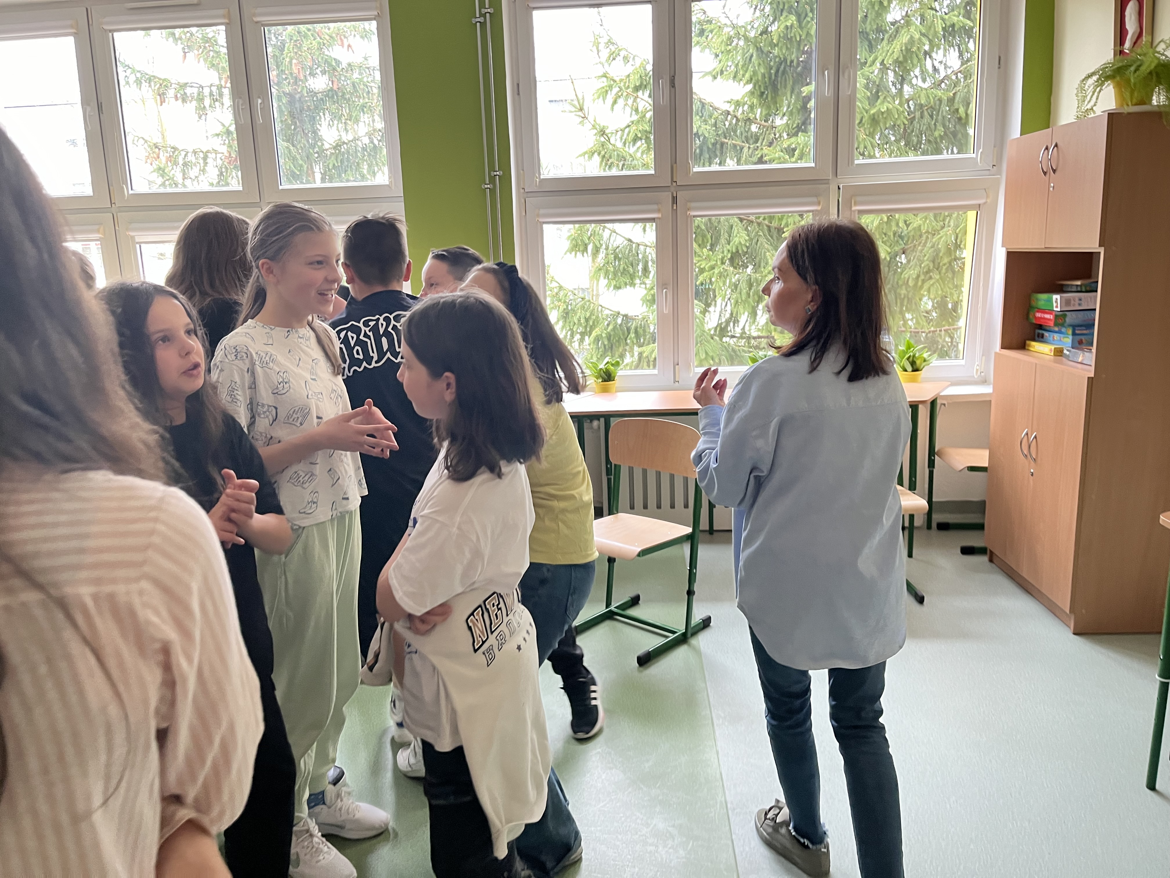 16 kwietnia 2024 odbyły się zajęcia integracyjne dla klas V. Tym razem dr Katarzyna Krzystanek skupiła się na wsparciu relacji w wielokulturowym zespole klasowym. Pomogła uczniom doskonalić umiejętności współdziałania i współpracy (także z ich ukraińskimi kolegami i koleżankami). Przedstawiła sposoby na budowanie klimatu otwartości, zaufania i wzajemnej akceptacji. Przećwiczyła z uczniami konkretne sytuacje problemowe.